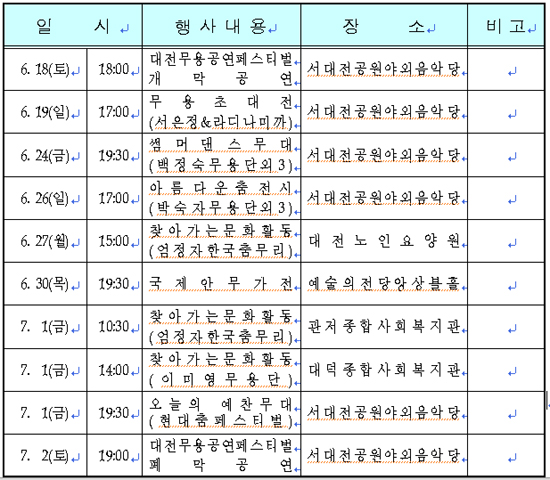 < 2011 대전무용공연 페스티벌 공연 일정 >