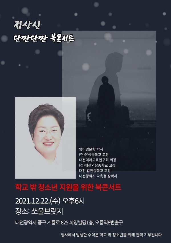 정상신 유성중 교장이 22일 학교 밖 청소년 지원을 위한 북콘서트를 개최한다.