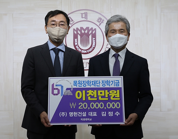 [충청뉴스 이성현 기자] 명헌건설㈜ 김정수 대표가 목원장학재단에 장학기금 2000만원을 기탁했다.
