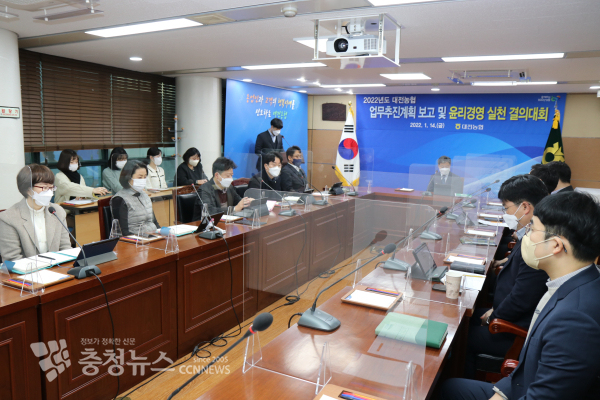 [충청뉴스 김윤아 기자] 농협중앙회 대전지역본부(본부장 정낙선)는 14일 「2022년 업무추진계획 보고 및 윤리경영 실천 결의대회」를 개최했다.