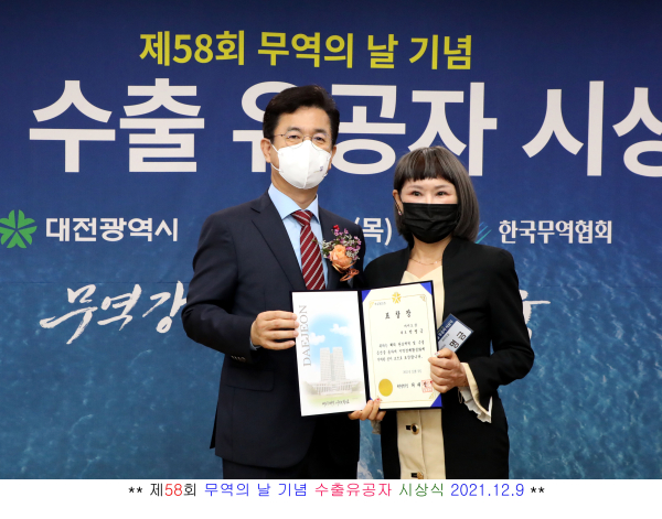 특히, 박명금 대표는 지난해 12월 제58회 무역의날 기념 수출 유공자 시상식에서 허태정 대전광역시장으로부터 해외판로 개척 및 수출증진을 통하여 지역경제에 활성화에 기여하여 수상한 바 있다.