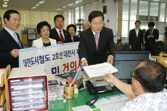 구우회 의장 등은 건의서에서 “국제과학 비즈니스벨트 유치와 도시철도 2호선 건설계획으로 대전이 ‘대한민국 新 중심도시’로 성장할 수 있는 계기가 마련됐다”고 전제한 뒤 “관저, 도마, 둔산, 정부청사를 잇는 매우 현실적이고 경제성 있는 최적안의 노선”이라고 주장했다.
