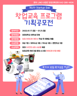 [충청뉴스 이성현 기자] 대전대학교 LINC+사업단 창업교육센터가 오는 31일까지 창업교육 프로그램 아이디어 공모전 지원자 접수를 실시한다.