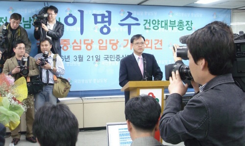 이날 기자회견장에는 충남도지사 후보 출정식을 방불케하는 분위기였으며, 중심당 주요 당직자와 이부총장의 지지자들이 대거 참석 힘을 실어 주었다.