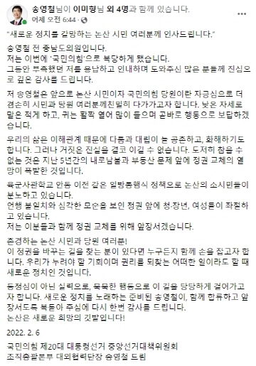 한편 송영철 전 의원은 오는 6월 지방선거에서 논산시장 출마 예상자로 거론되고 있다.
