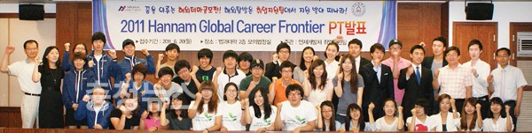 한남대학교가 해외 취업에 필요한 구직능력 향상을 위해 해외탐방 공모전 '2011 Hannam Global Career Frontier'를 개최한 결과, 총 20개 팀이 지원해 이중 8개 팀을 선발했다.