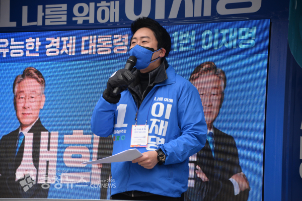 강준현·홍성국 공동위원장의 지지연설에 이어, 안찬영·상병헌 두 시의원의 일 잘하는 후보 이재명 후보 지지연설이 이어졌고, 이후 선거운동원과 참여자들은 이재명 로고송에 맞춘 율동을 함께 했다.