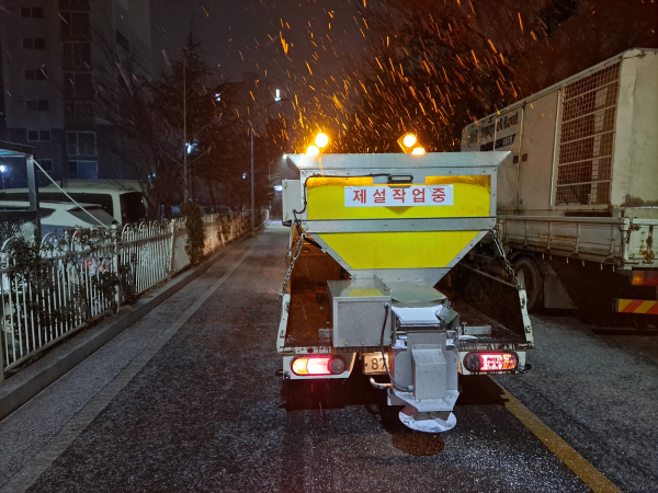 당일 시는 15t 모래살포기 10대, 다목적 1대. 8t 모래살포기 1대, 5t 모래살포기 4대, 2.5t 모래살포기 1대, 1t 모래살포기 9대 등을 가동해 주요 도로 등 지역 곳곳을 제설했다.