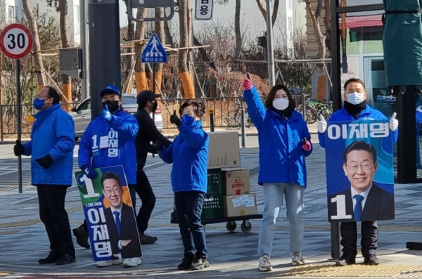18일 세종(갑) 대전환 선대위는 다정동상가 일원에서 조상호 전 세종시경제부시장과 당원들이, 세종(을) 나침판 유세단은 고운초사거리에서 손현옥 세종시의원과 당원들이 이재명 후보에 대한 지지를 호소했다.