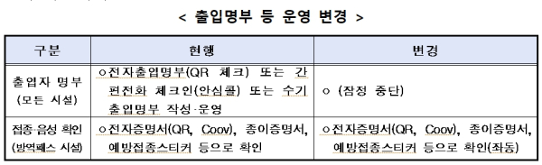 출입명부는 추후 신종 변이바이러스가 등장하거나 유행양상 등 방역상황 변동에 따라 탄력적으로 운영할 계획이다.