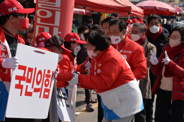 [충청뉴스 최형순 기자] 충북 제천 출신인 이혜훈 국민의힘 전 의원이 7일 세종시 금남면 대평시장 지원유세에서 윤석열 후보 지지 호소와 시장을 순회하며 시장 소상인들과 소통했다.