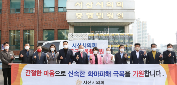 [충청뉴스 최형순 기자] 사상 유례없는 산불 피해를 입은 동해안 지역 주민에 대한 도움의 손길이 줄을 잇고 있는 가운데, 서산시의회도 온정 나눔 대열에 합류했다.