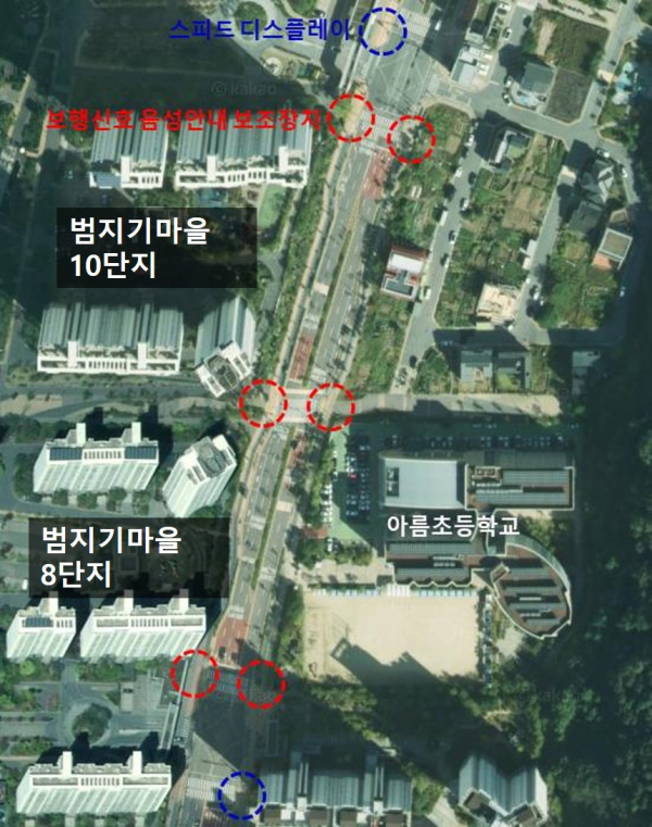 세종특별자치시의회 상병헌 의원은 "범지기마을 8단지와 10단지에서 아름초를 연결하는 아름동 달빛로 횡단보도에 스피드 디스플레이와 보행신호 음성안내 보조장치, 과속 단속카메라를 설치할 계획"이라고 15일 밝혔다.