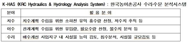 공사 관계자는 16일 “농업 분야 최고 기술력을 가진 공사의 수리수문 분석과 IT 기술의 융합을 통해 만들어낸 수문설계시스템(K-HAS)이 민간과 학술연구에 적극 활용되기를 바란다”고 밝혔다.