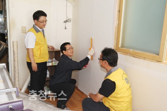 박환용 서구청장은 18일 관내 독거노인 3가구를 방문, 이마트 트레이더스 대전 월평점 관계자와 함께 무료도배 봉사활동을 실시했다.