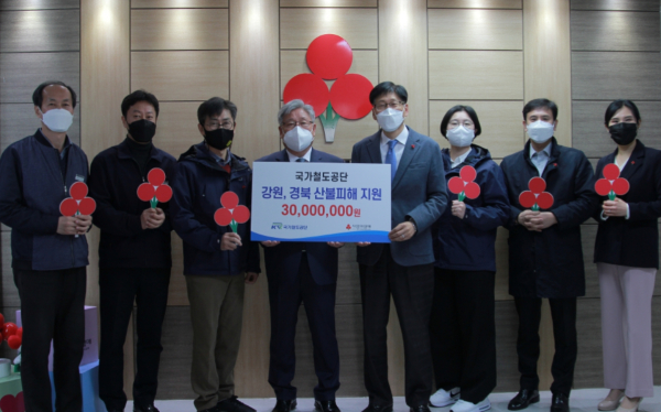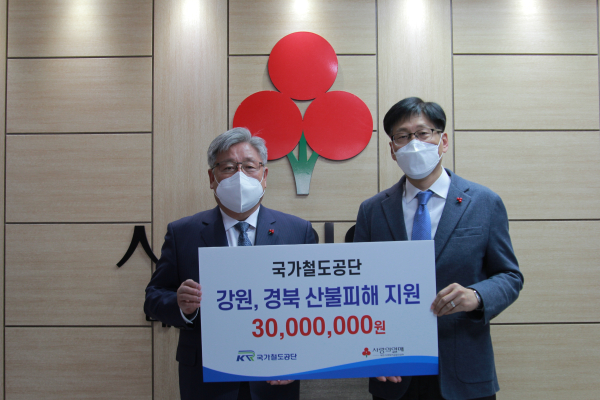 [충청뉴스 최형순 기자] 국가철도공단(이사장 김한영)은 동해안 산불로 삶의 터전을 잃은 이재민들을 위한 구호 활동 및 피해복구 지원을 위해 노사가 함께 모은 성금 3,000만원을 사회복지공동모금회에 전달했다.