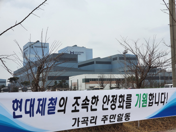 가곡리 주민들 "현대제철의 조속한 안정화 기원과 임직원 응원" 현수막 내걸어