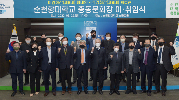 [충청뉴스 박동혁 기자] 순천향대학교는 25일 대학 본관 1층 스마트홀에서 제8·9대 총동문회장 이·취임식을 진행했다.