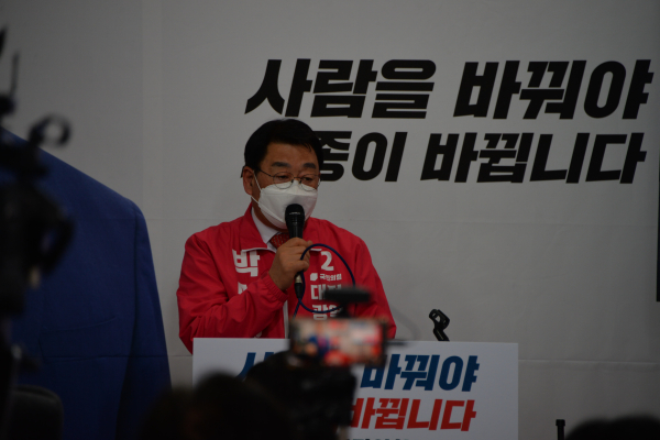 그러면서 "미래 실질적인 수도를 만들기 위해서는 윤석열 당선인과 철학과 공약이 같은 최민호 후보로 사람을 바꾸어야 한다"고 지지를 호소 했다.