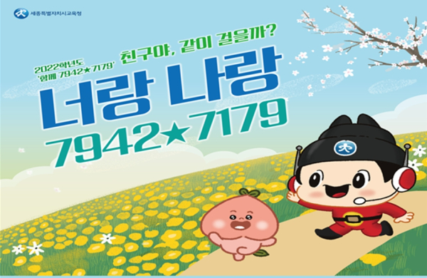 [충청뉴스 최형순 기자] 세종특별자치시교육청(교육감 최교진, 이하 세종시교육청)은 학생의 관계 역량 함양과 긍정적 교우관계 형성을 위해 2022학년도 학생 주도형 관계중심 생활교육 ‘함께 7942★7179’를 추진한다.