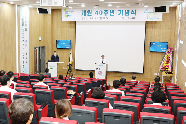 기념식은 학교법인 동은학원 서교일 이사장, 순천향대천안병원 박상흠 병원장 등 주요 임직원 및 대표 수상자들이 참석한 가운데 국민의례, 40주년 기념동영상 시청, 시상식, 기념사, 축사 등의 순서로 진행됐다.