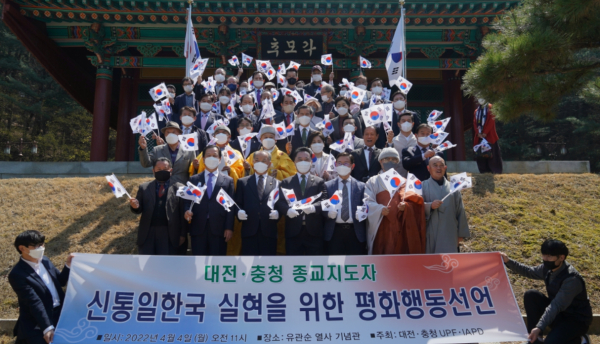 [충청뉴스 최형순 기자] 천주평화연합(UPF) 대전·충청지구(회장 유경득)은 4일 충남 병천 소재 유관순열사 기념관에서 대전·충청권 종교지도자 43명이 ‘신통일한국’ 실현을 위해 행동에 나설 것을 결의했다.