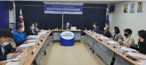 더불어민주당 세종시당 공천관리위원회는 이번 회의에서 제8회 전국동시지방선거 후보자 공모의 건을 의결하였고, 신청기간은 5일(화)~8일(금) 4일 간 방문접수를 받는다.
