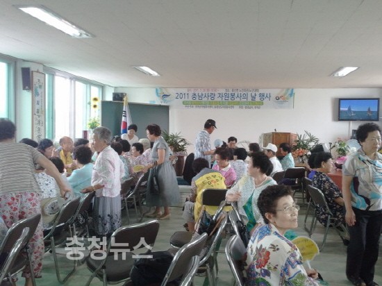 부여군(군수 이용우)은 지난 26일 홍산면 노인회관에서 자원봉사자 및 지역주민 등 350여명이 참여한 가운데 찾아가는 사랑의 이동봉사활동을 실시했다.