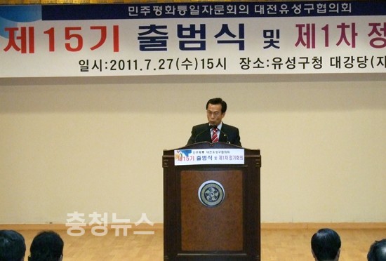 민주평화통일자문회(의장 대통령) 대전유성구협의회 출범식 및 김문영 협의회장 취임식이 27일 유성구청 대강당에서 주요 내ㆍ외빈인사와 자문위원 등 120여명이 참석한 가운데 개최됐다.