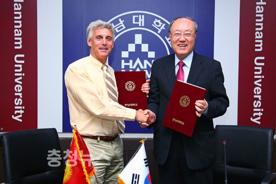 한남대가 29일 오후 3시 대회의실에서 열린 키르기스스탄 중앙아시아 미국대학(American University of Central Asia, chdwkd)과 상호교류협력을 위한 협약을 체결했다.