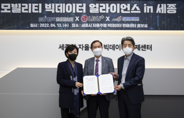 [충청뉴스 최형순 기자] (재)세종테크노파크 (원장 김현태, 이하 세종TP)는 LG유플러스(대표 황현식), 한국교통연구원(원장 오재학)과 함께 모빌리티 기술 고도화와 신규 서비스 창출을 위한 “모빌리티 빅데이터 얼라이언스 in 세종” 업무협약을 체결했다.