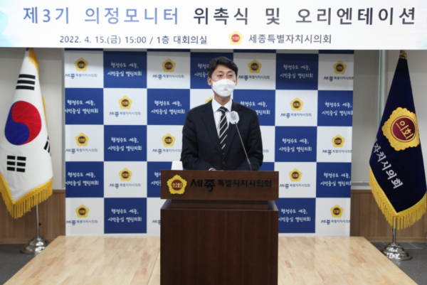 [충청뉴스 최형순 기자] 세종특별자치시의회(의장 이태환)는 15일 시민과의 소통을 강화하기 위해 모니터링 인원과 연령대를 확대한 제3기 의정모니터단 40명을 위촉했다.