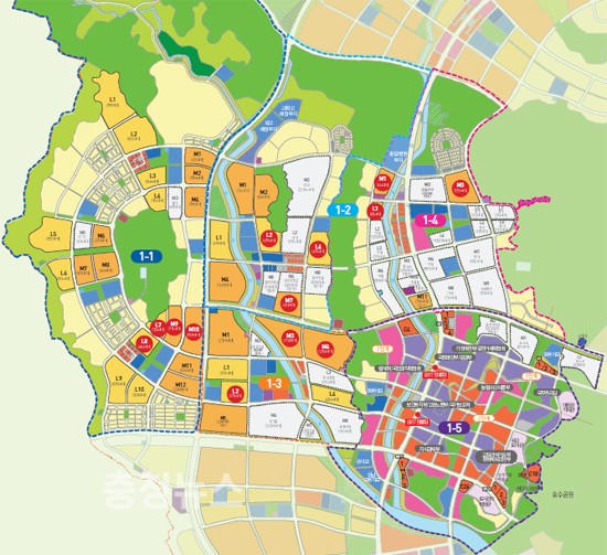 공동주택용지 13필지 중 85㎡이하 5필지는 추첨분양으로 공급하게 되나, 85㎡초과 평형이 혼합된 8필지는 경쟁입찰로 공급하게 되어 있다. 분양일정은 입찰 및 분양신청이 오는 24일~25일 양일간에 있고, 계약체결은 오는 30일~31일에 이루어진다.
