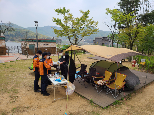 천안동남소방서는 캠핑 수요 증가에 맞춰 산림인접 캠핑장의 화재예방을 위해 관내 5개소의 캠핑장에서 안전한 캠핑을 위한 홍보 캠페인을 실시했다.