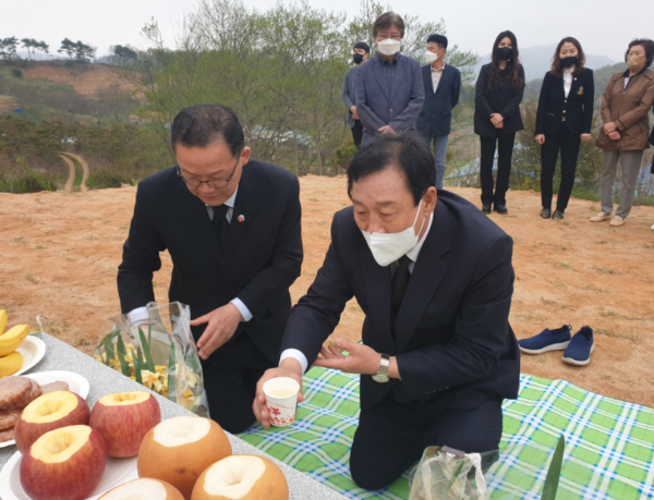 [충청뉴스 최형순 기자] 최민호 국민의힘 세종시장 예비후보는 22일 선거대책 위원 및 캠프 관계자들과 함께 충남 청양군 비봉면 故 이완구 전 국무총리 묘소를 방문해 참배했다.