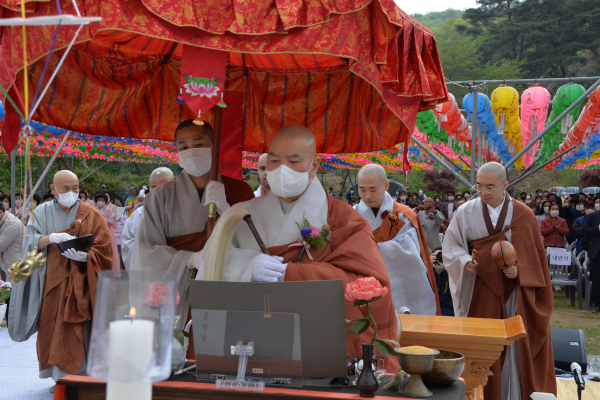 이는 코로나19로 인하여 봄에서 가을로 가을에서 봄으로 연기를 계속하다가 조심스러운 상황이지만 사부대중이 모여 재난의 완전 소멸을 함께 발원 하는 것도 좋은 일이라 사료되어 봉행하게 되었다.