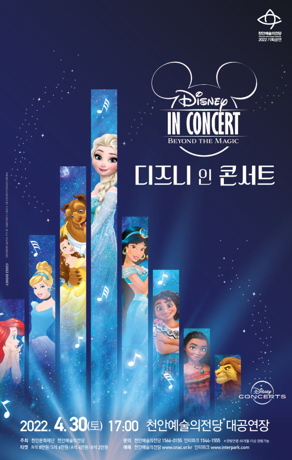 [충청뉴스 박동혁 기자] 천안문화재단은 "어린이날 선포 100주년 기념을 맞아 ‘2022 디즈니 인 콘서트: 비욘드 더 매직(Beyond The Magic)’이 오는 30일 천안예술의전당에서 개최한다"고 밝혔다.