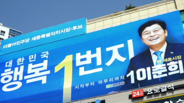 〔포토〕이춘희 세종시장 예비후보, 대형 홍보물 눈길