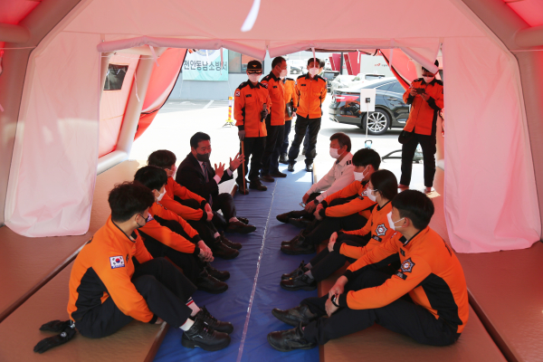 이번에 배치된 텐트는 에어텐트와 냉‧난방기, 발전기 등 7종으로 구성되며, 대형화재나 실종자 수색 등 오랜 시간 현장 활동을 하거나, 폭염과 한파 등 열악한 기상 환경에서 활동하는 소방공무원들의 체력 회복을 도울 것으로 기대된다.