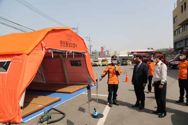 박찬형 천안동남소방서장은 “텐트 도입으로 장기적인 현장활동이 가능해졌다”며, “국민에게 보답할 수 있는 소방이 되겠다”고 밝혔다.