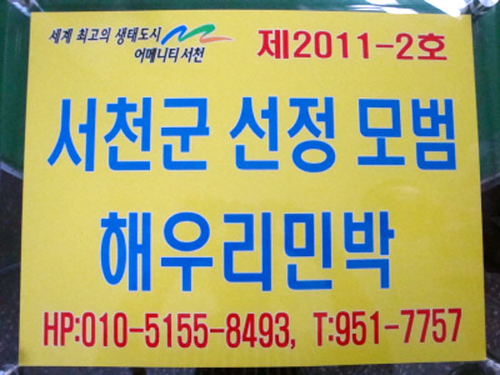 서천군(군수 나소열)은 관내 88개 민박 지정업소에 대해 농어촌민박 선진화를 위한 지정현판을 10일 까지 설치 완료했다고 밝혔다.