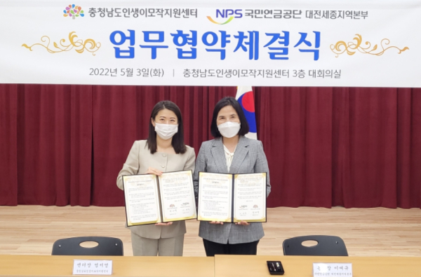 [충청뉴스 최형순 기자] 국민연금공단 대전세종지역본부(본부장 이여규)는 3일 충청남도인생이모작지원센터(센터장 염서영)와 업무협약(MOU)을 체결했다.