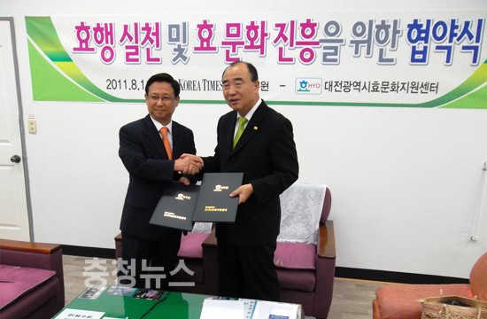 대전 효문화지원센터(원장 오원균)와 Korea Times 국제교류원(이사장 박한규)은 11일 효문화지원센터에서 오는 10월 7~9일에 3일간 대전 세계효문화 뿌리축제를 UN가입국 세계 193개국에 널리 사전에 알리기 위한 협약식을 체결했다.