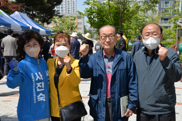 좌로부터 사진숙 후보, 김옥산 회장, 이재군 노인회장, 박상희 관리소장