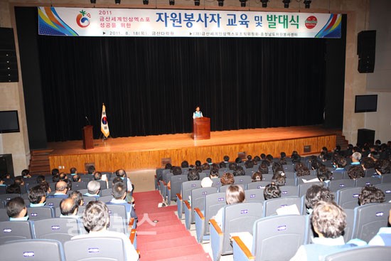 '2011 금산세계인삼엑스포'가 15일 앞으로 다가온 가운데, 충남도와 금산인삼엑스포조직위원회는 500여명의 자원봉사자와 함께 18일 '자원봉사자 교육 및 발대식'을 갖고 축제의 성공적 개최를 다짐했다.