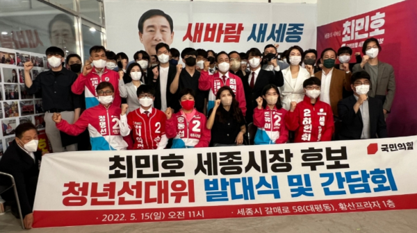 [충청뉴스 최형순 기자] 최민호 국민의힘 세종시장 예비후보는 15일 선거사무소(갈매로 58)에서 청년선대위원회 발대식을 개최했다.