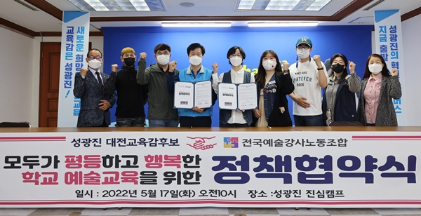 전국예술강사노동조합 측은 성 후보와 ▲존중과 협력을 지향하는 학교 내 교육공동체 실현 ▲학교문화예술교육 확대 ▲예술 강사 처우개선 ▲문화예술교육지원협의회·진흥위원회에 예술 강사 참여 등의 정책을 협약했다.