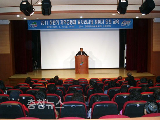 이석화 청양군수는 “2010년 대비 일자리사업 국·도비 보조금이 60%나 감소해 사업추진에 어려움이 있었으나 우리군은 하반기에 순수 군비로만 2억 8천만원을 투입해 135명의 일자리를 추가로 창출할 계획”이며 “오늘 안전교육을 잘 받으셔서 여러분들 모두가 안전사고 예방에 각별히 유의해 주시기 바란다”고 말했다.