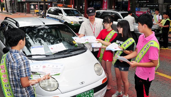 여름방학 시작부터 지금까지 57명의 학생들이 1일 3시간씩 주차단속반원과 함께 조를 편성해 중구지역 불법주차구역을 순회하며 불법주정차 단속 및 계도활동을 전개해 왔다.