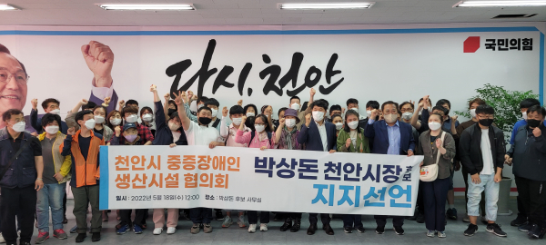 천안시중증장애인생산시설협회(회장 허성천) 회원 50여 명은 지난 18일 첫 지지선언을 했다.